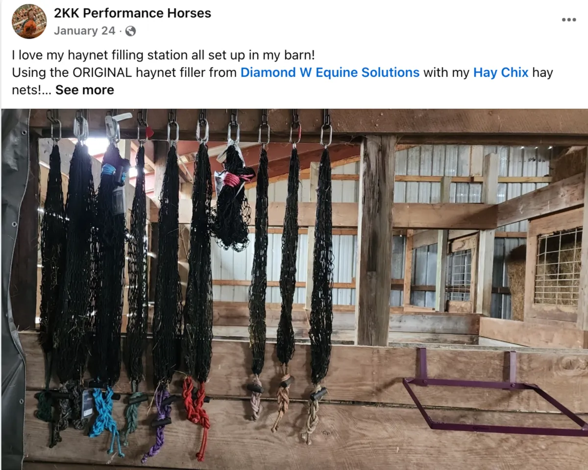 Out of the frustration a fellow horse girl's boyfriend endured trying to get her hay nets full at the barrel race, he was fed up with wrestling hay into nets so he set out to create a solution to make life way easier. And today, we all are able to benefit from his innovation to save us all the time and frustration we've all experienced trying to fill our hay nets.
